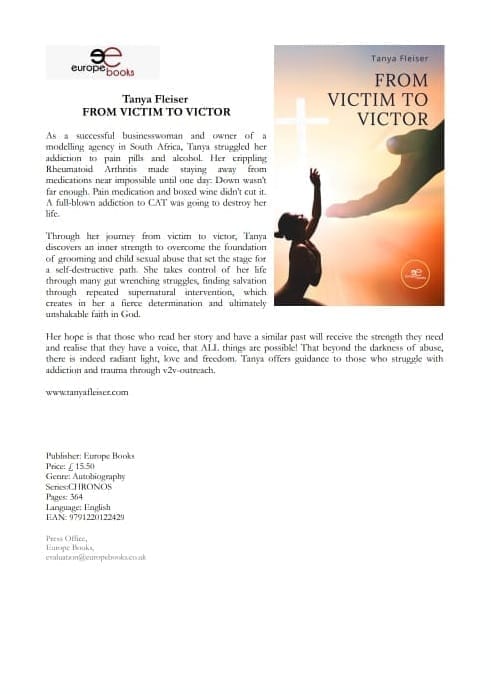 Her hope is that those who read her story and have a similar past will receive the strength they need and realise that they have a voice, that ALL things are possible! That beyond the darkness of abuse, there is indeed radiant light, love and freedom. Tanya offers guidance to those who struggle with addiction and trauma through v2v-outreach.